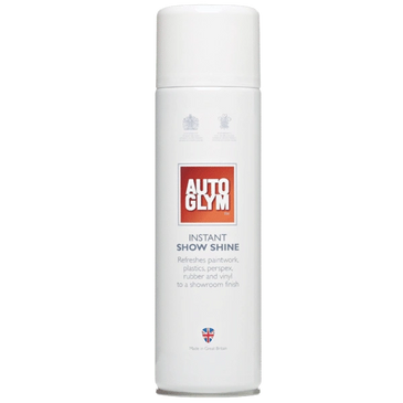 AutoGlym Instant Show Shine is a spray wax in an aerosol can to give car paint extra shine. With the AutoGlym Instant Show Shine spray you can give the car's paint a showroom shine. Thanks to the unique formula, you can easily remove dust, stains and fingerprints from the car with the AutoGlym Instant Show Shine.