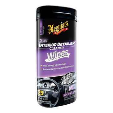 Meguiar's Quik Interior Detailer Wipes are cleaning wipes to quickly and easily clean the car interior. The cleaning wipes leave a fresh scent and contain anti-static properties to prevent dust.